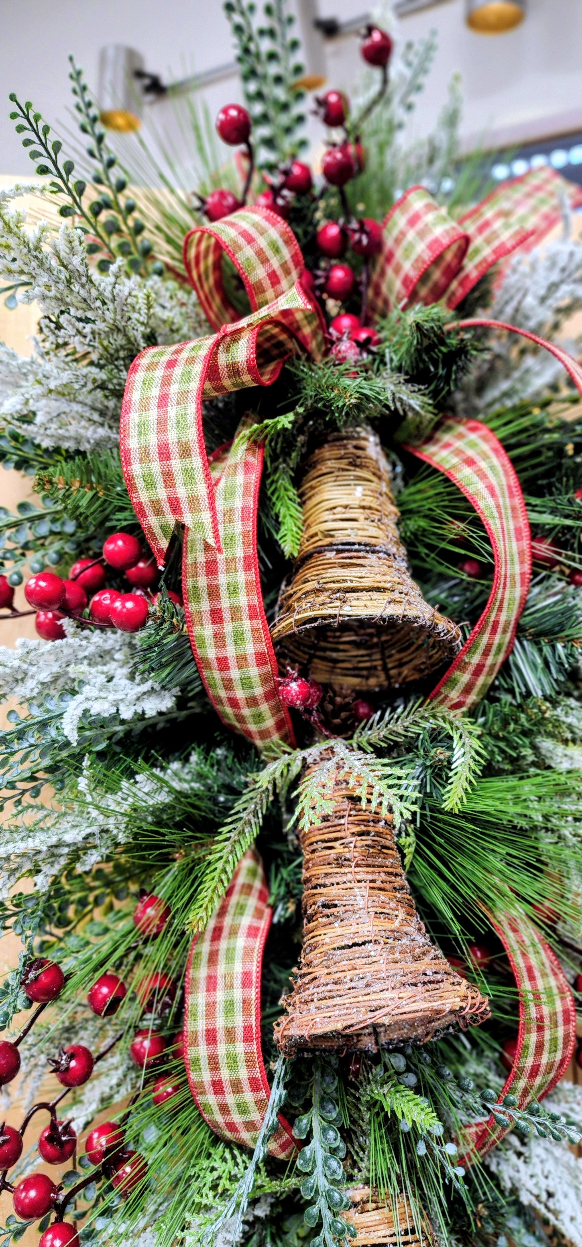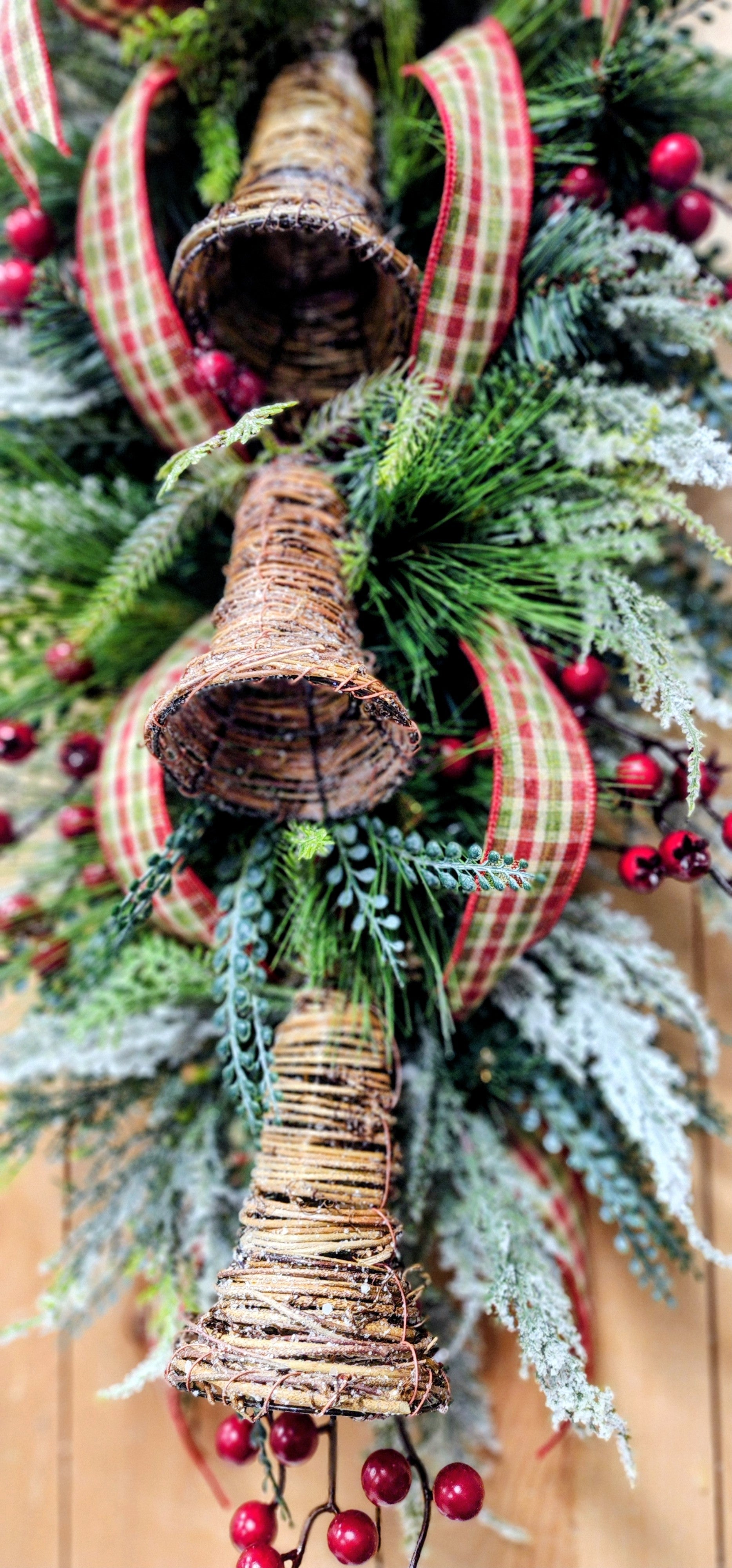 A lovely piece for that front door, or even a double door set, as we have 2 swags available. These pieces can last all winter long, with a generalized winter theme, instead of Christmas specific. The bells are super trendy right now as well and will make a great statement piece for your space!