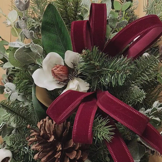 Enhance your winter decor with Merry Magnolias, a set of beautifully matching decorations. The rich colors and intricate designs will elevate any space with a touch of elegance. Perfect for adding a warm and festive atmosphere to your home during the holiday season.